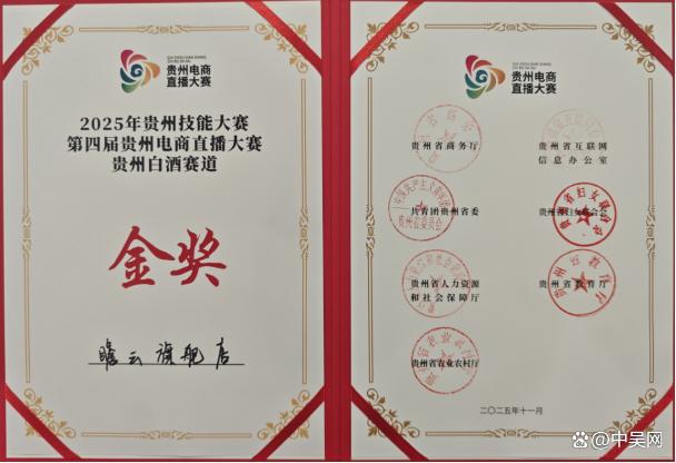 2025 年 11 月 6 日,2025 贵州技能大赛——第四届贵州电商直播大赛全省总决赛在贵州电子商务职业技术学院圆满落幕。经过三个月的激烈角逐,贵州瞻云酒业“瞻云旗舰店”团队在首次增设的贵州白酒赛道中表现亮眼,从全省630 支参赛队伍、超 2200名参赛者中脱颖而出,最终摘得该赛道金奖。